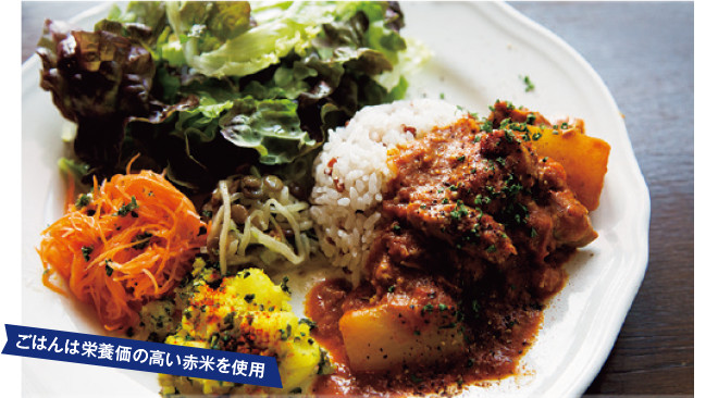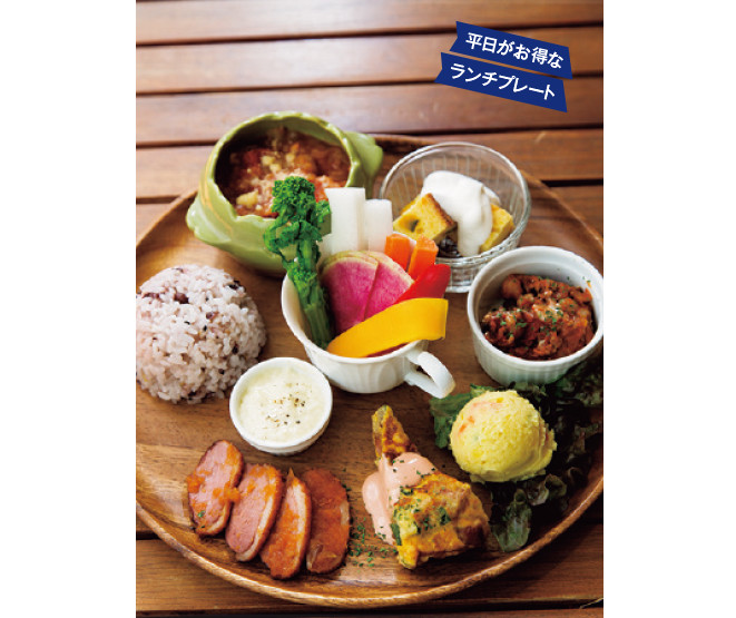 旬の野菜をたっぷりと使った人気ランチ。 平日1000円(税込)、土・日曜、祝日1280円(税込)