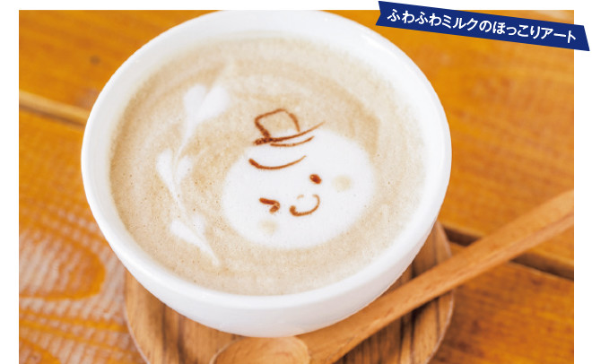 スタッフによってデザインが変わる、キュートなラテアート。なめらかなフォームミルクで味も絶品! ほんわかカフェラテ550円