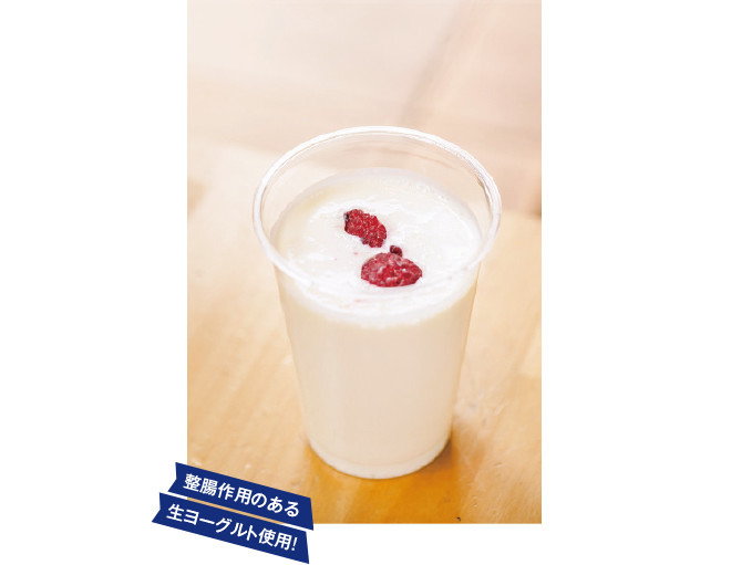 生フローズンヨーグルトにも使用している、加熱殺菌していない生きた乳酸菌がとれるドリンク。飲むヨーグルト(M)350円(税込)
